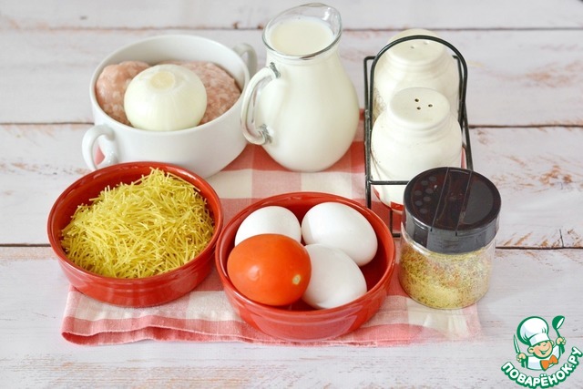 Ингредиенты для «Запеканка из куриного фарша с вермишелью»: