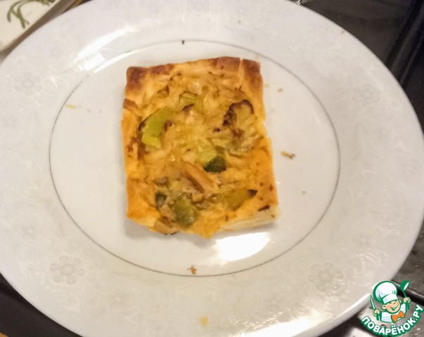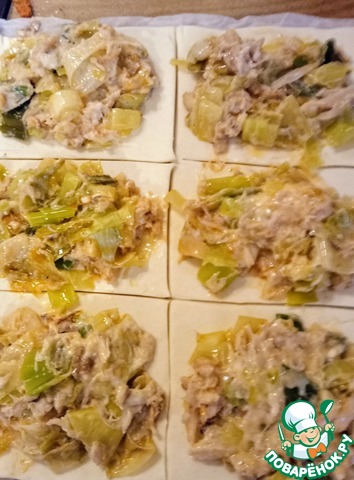 Рецепт «Слойки с луком-пореем и крабовым мясом»: