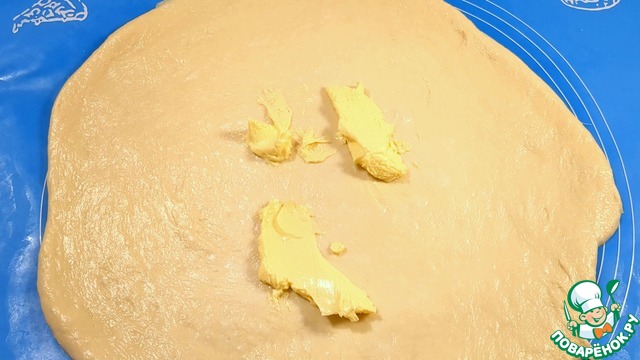 Раскатайте тесто и добавьте сверху 40 г сливочного масла