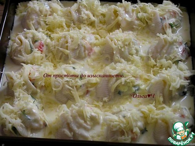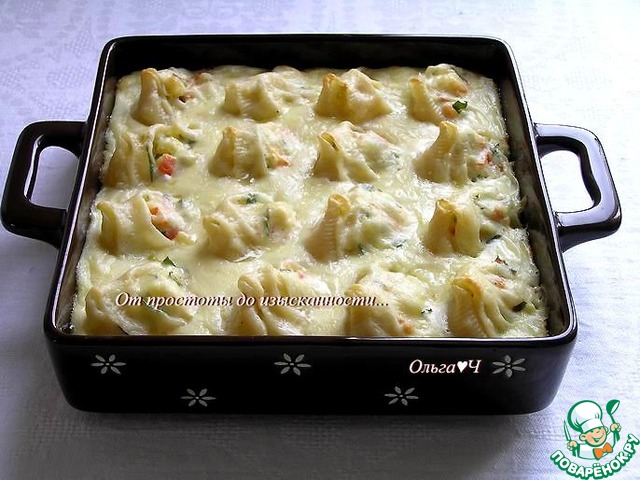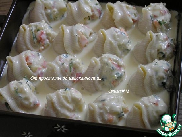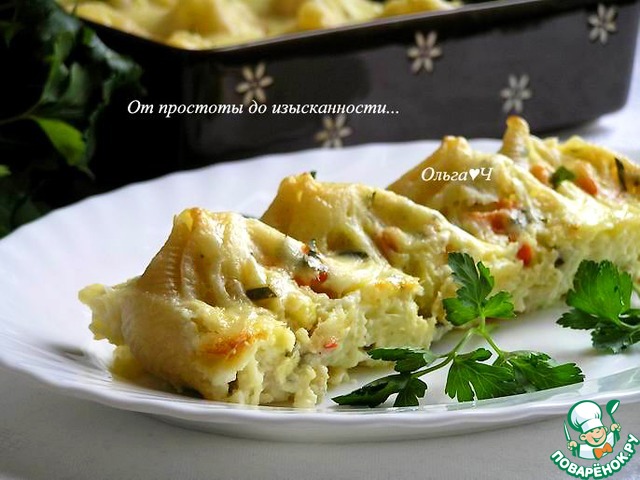 Необычная закуска или основное блюдо в итальянском стиле. Лумакони - это особый вид пасты для фарширования в виде ракушек. Обычно их фаршируют мясным соусом, но в этом варианте в качестве начинки я использовала творог и овощи. Получилось вкусное и сытное блюдо под нежным соусом Бешамель. Попробуйте!