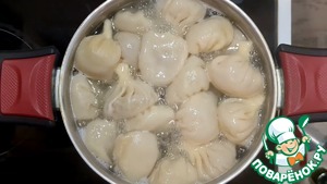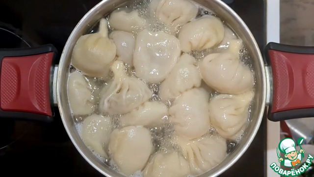 Опустите хинкали в кипящую воду.