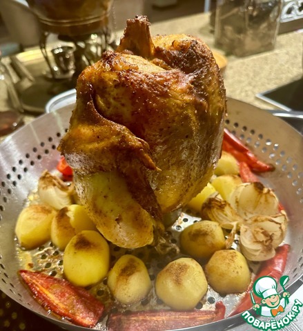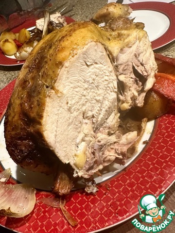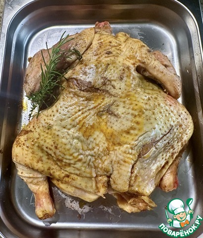 Получилось очень даже … сочная, хорошо пропечённая тушка.