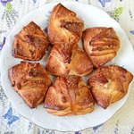 Из каждого треугольника формуем булочку, как показано на видео. С остальными шариками теста проделываем тоже самое.