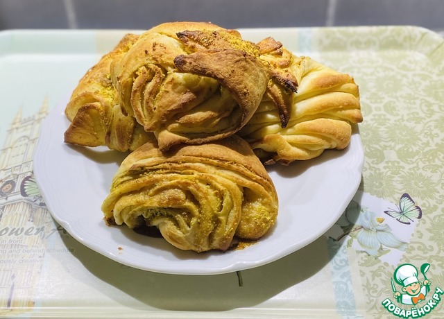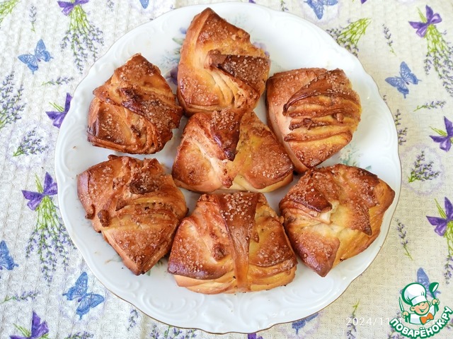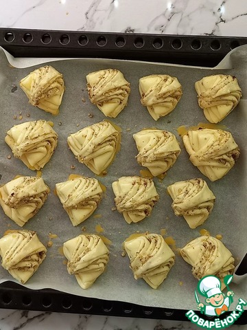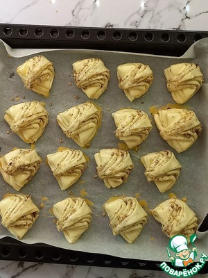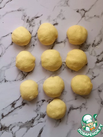 Оставляем булочки для подъема на 15 минут. Затем смазываем яйцом и выпекаем 20 минут при 180 градусах.