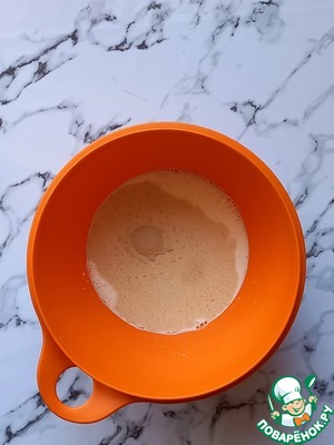 Вливаем теплое молоко, добавляем сахар и дрожжи. Перемешиваем.