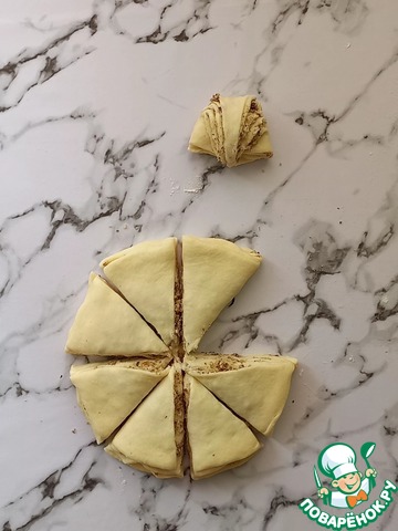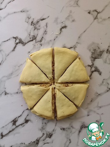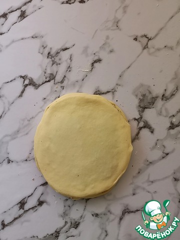 Последний (пятый) круг оставляем без начинки. Делим все слои теста на 8 треугольников.