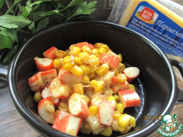 Рецепт «Закуска из кукурузы и крабовых палочек»: