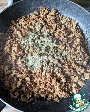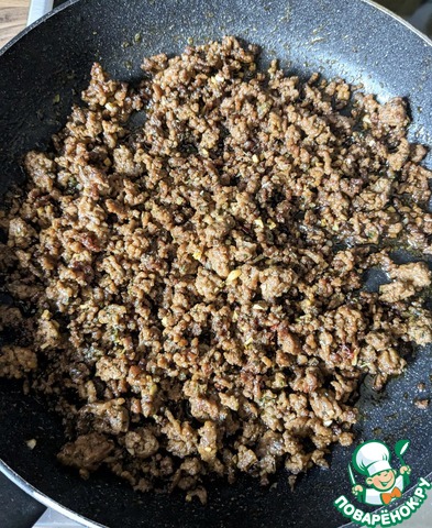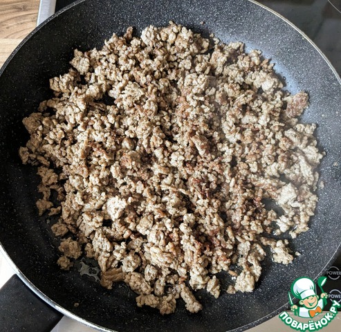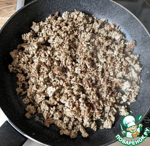 Разогреть 1 ст. ложку растительного масла и мелко разбивая, поджарить фарш до зарумянивания.