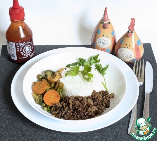 Азиаты подают это блюдо с жареным яйцом, я заменила на овощи.