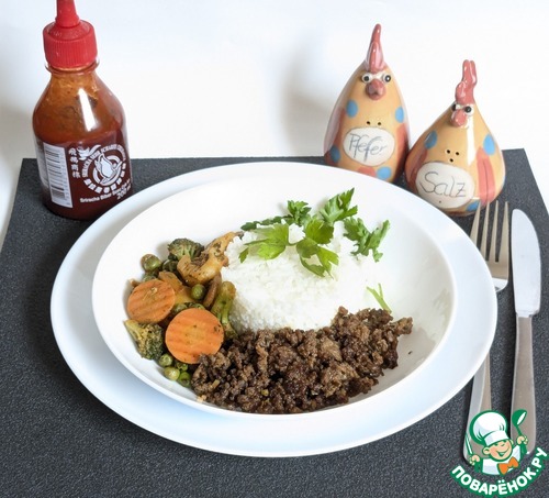Ингредиенты для «Острый жареный фарш по-тайски»: