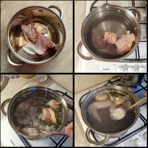 Куриное мясо промыть, уложить в кастрюлю, залить холодной водой, дать закипеть, убрать образовавшуюся пену, посолить и сварить куриный бульон.