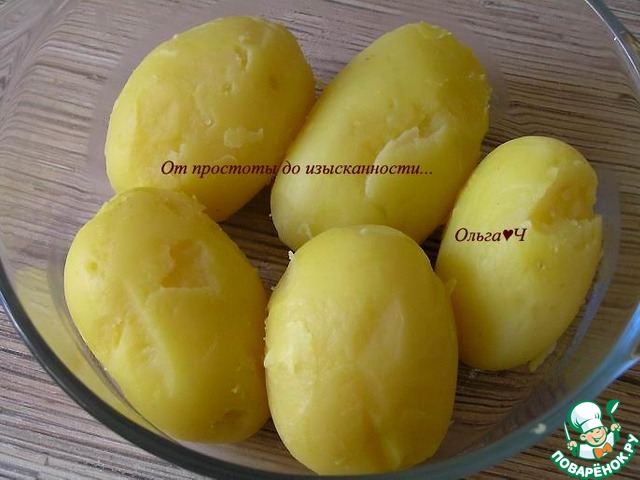 Для этого рецепта картофель лучше отварить в мундире, чтобы не было лишней жидкости, или использовать вчерашнее картофельное пюре.