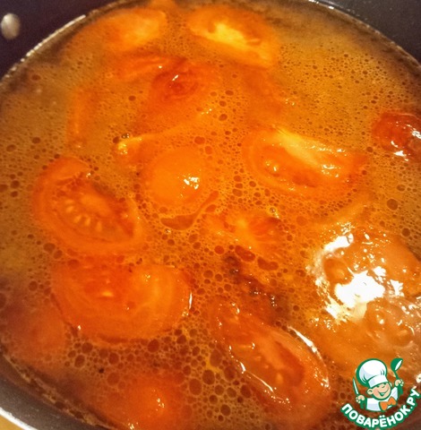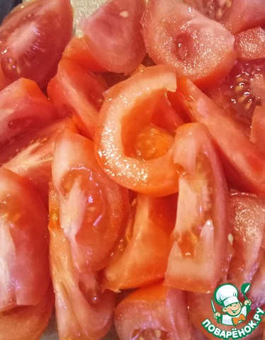 [+5]Картофель мелко нарезала, залила кипятком, готовился пять минут, параллельно с помидорами.