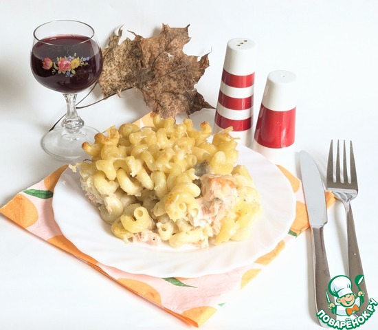 Ингредиенты для «Запеканка с лососем и рожками»: