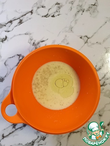 Перемешиваем теплое молоко, сахар, соль, дрожжи и растительное масло.