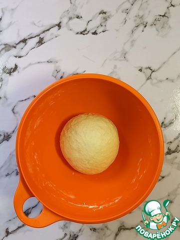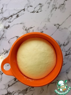 Всыпаем муку и замешиваем мягкое тесто. Оставляем в теплом месте на 1 час.