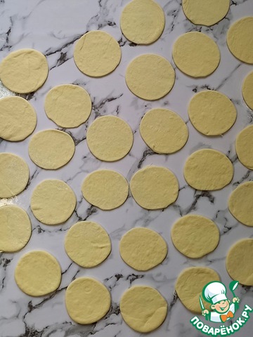 Раскатываем его и вырезаем круги диаметром 8 см.