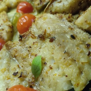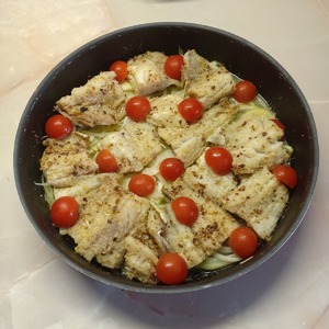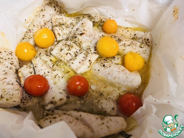 Через 20мин вынуть рыбку, добавить нарезанные помидорки, и снова поставить форму в духовку на 10мин, сняв фольгу. Если вы будете запекать в фольге, помидорки можно не добавлять.