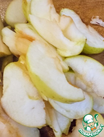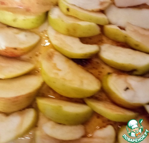Очистить и нарезать яблоки на тонкие пластины ( как можно тоньше- это важно!)