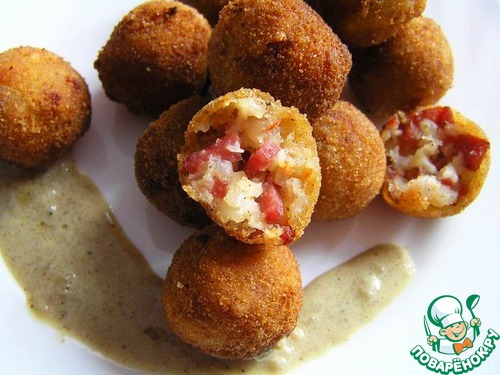 Можно каждый шарик окунать в соус или полить сверху.
