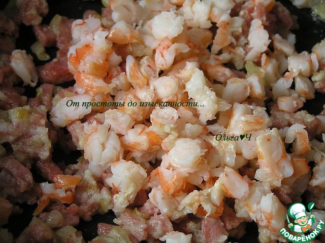 Добавьте рубленные креветки, готовьте 2 минуты, помешивая.