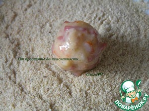 Окуните шарики во взбитое яйцо, обваляйте в панировочных сухарях.