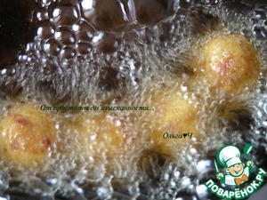 Обжарьте партиями во фритюре до румяности. Выложите на бумажное полотенце.