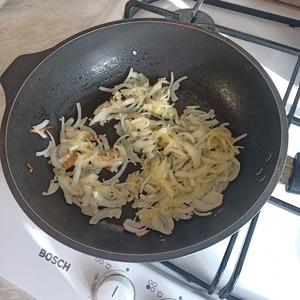 Нарезанный лук обжарить на растительном масле до золотистого цвета.