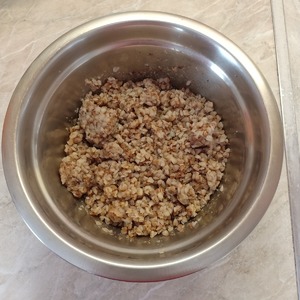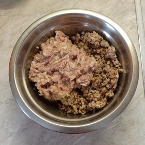 Вымешанный фарш переложить в глубокую миску, добавить к нему гречку и снова все хорошо перемешать.