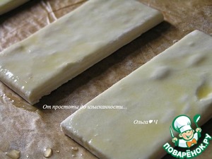 Слоеное тесто разрежьте на прямоугольники.