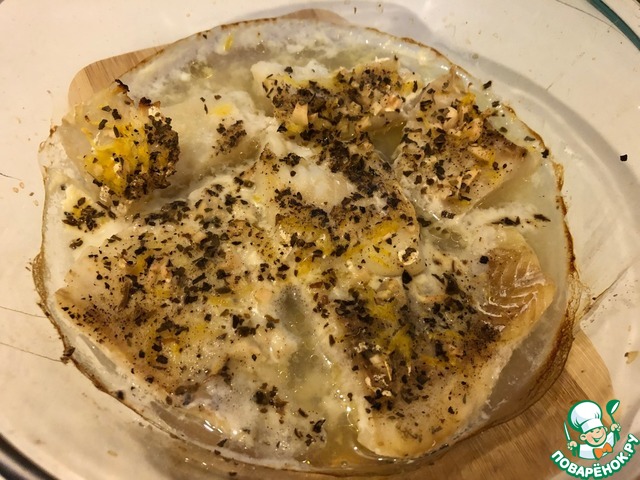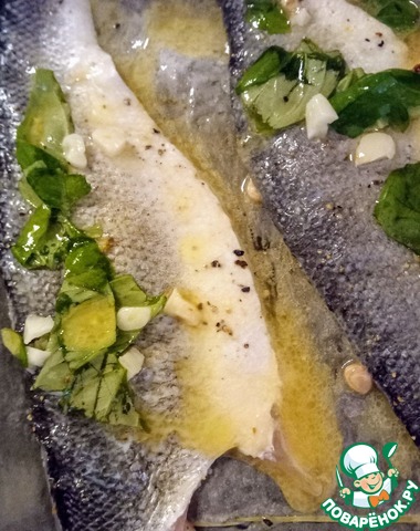 Рецепт "Морской окунь под сливочно-лимонно-чесночным соусом":
