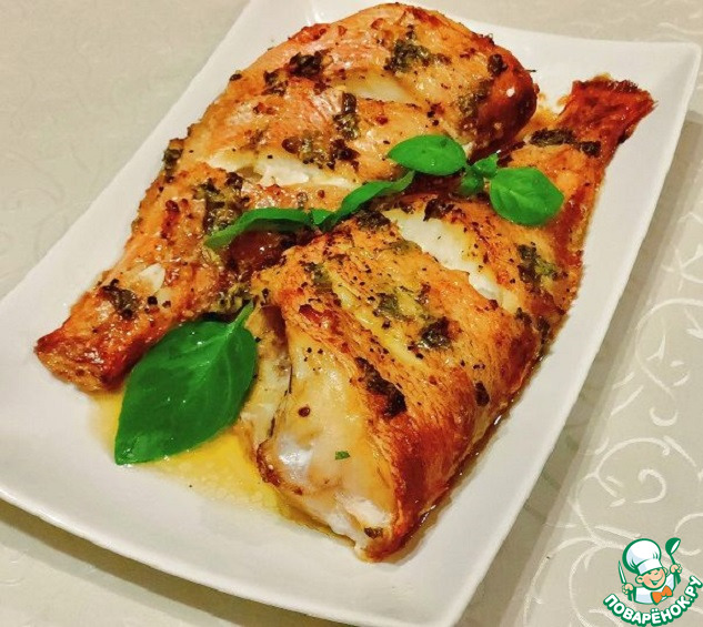 Рецепт «Морской окунь под сливочно-лимонно-чесночным соусом»: