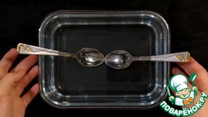 • Для подготовки шоколадной формы вам понадобятся 2 контейнера разного размера, чтобы 1 контейнер мог поместить в другой. Подготовьте заранее форму льда. Налейте 1 литр воды в меньший по размеру контейнер, поставьте 2 чайные ложки внутрь с двух сторон и поместите в морозильник на 4 часа.