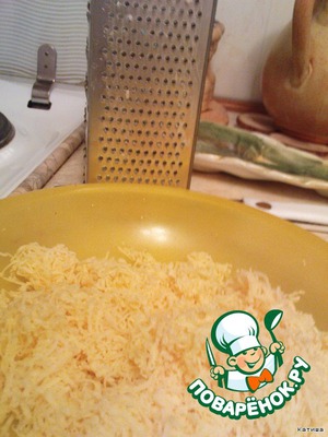 • Готовим начинку. Сыр трём на мелкой терочке