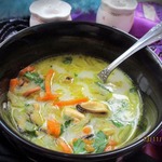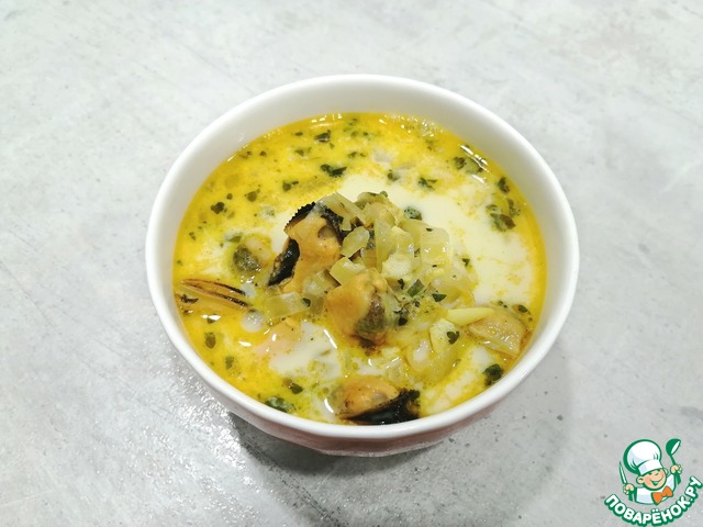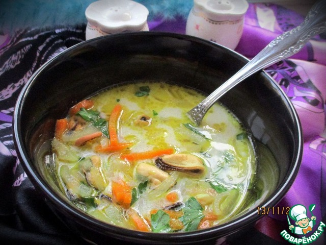 Суп с карри, сливками и мидиями - это очередной "moules mariniere*, но в этот раз его зимний вариант. Карри придает супу остроту, которая так необходима в холодный зимний вечер.