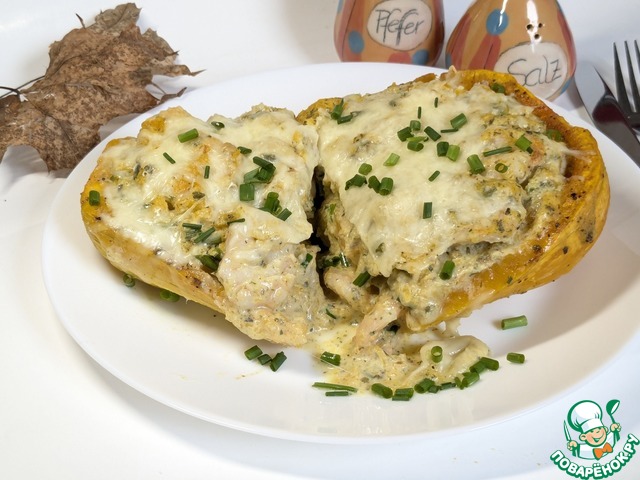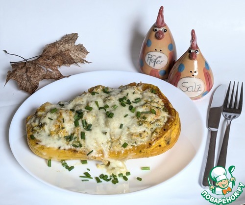 Рецепт «Тыква, фаршированная креветками и сыром»: