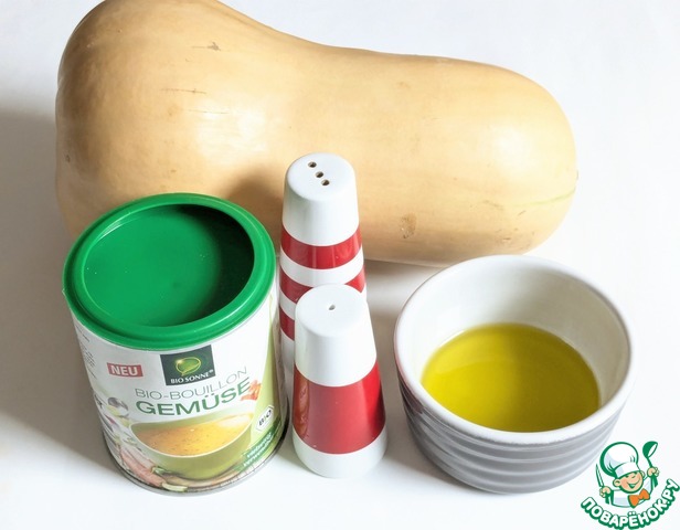 Для приготовления тыквы смешать оливковое масло с сухим овощным бульоном.