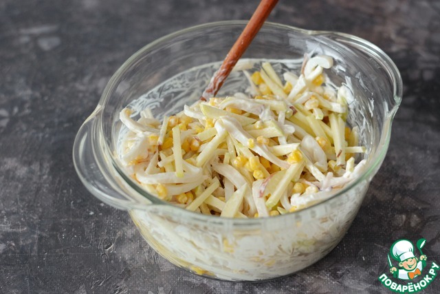 Рецепт «Салат с кальмарами, яблоком и кукурузой»: