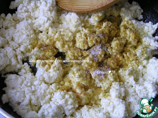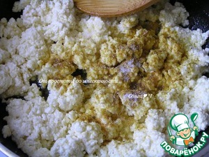 Постоянно помешивая, обжарьте творожную массу пару минут.