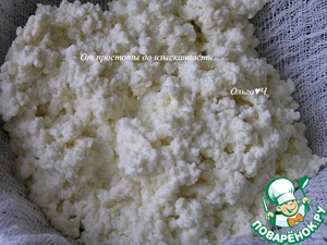 Процедите молоко через сито, застеленное марлей, отожмите творожную массу.