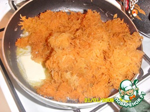 Сливочное масло растопить на сковородке, добавить морковь и обжарить минут 10-15 (под крышкой) до мягкости.