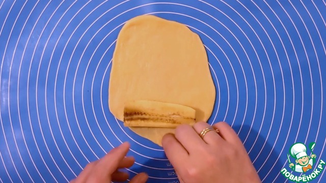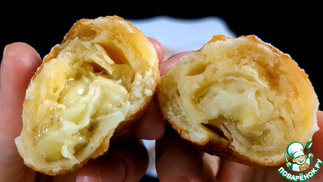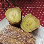 Заверните каждый кусочек банана в тесто, плотно обернув его. Концы можно оставить открытыми или склеить — оба способа показаны в видео.