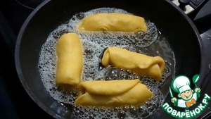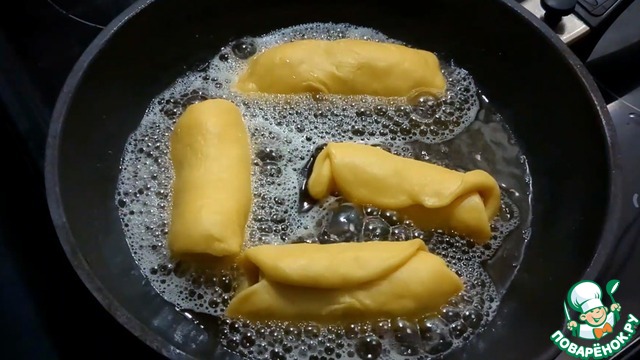 Обжаривайте бананы в тесте на среднем огне, переворачивая, пока они не станут золотистыми со всех сторон. -
