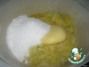 Лимон с цедрой растереть на мелкой терке, соединить с растопленным сливочным маслом, сахарной пудрой и ...