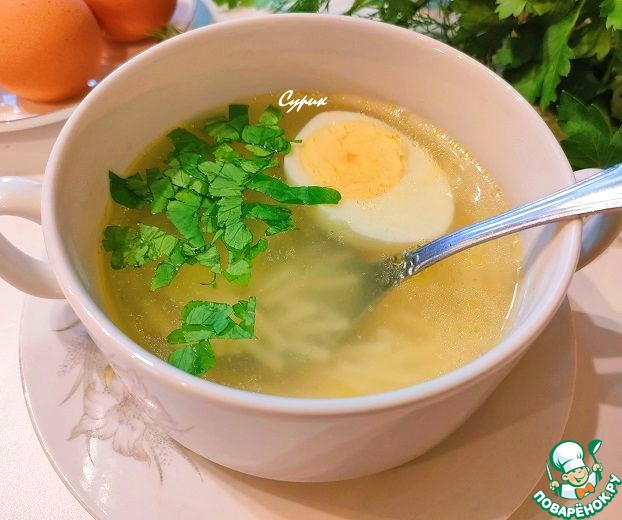 Рецепт «Куриный бульон с вермишелью и яйцом»: