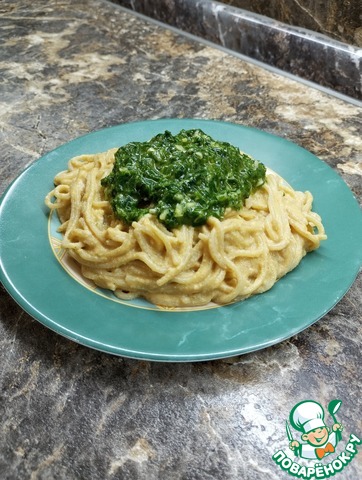 Разложить макароны по блюдам, полить соусом из чеснока и петрушки. Можно подавать. Приятного аппетита.