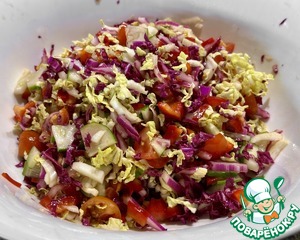 - Капуста пекинская (150 - белой и 150 - розовой) — 300 г