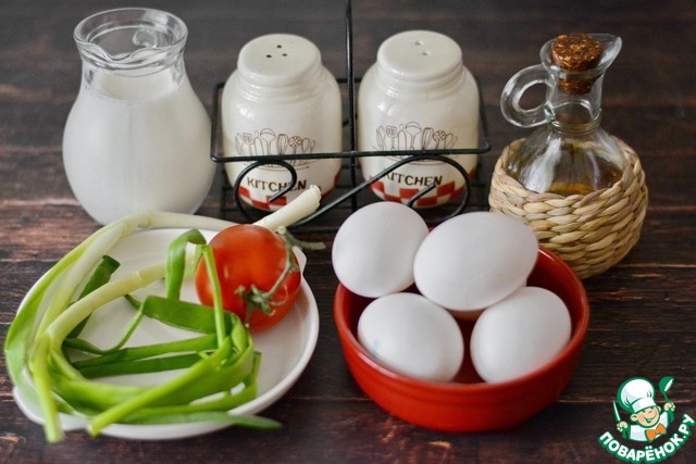 Ингредиенты для «Омлет с помидорами и зелёным луком»: