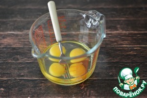 Влейте к яйцам молоко и смешайте яйца с молоком.