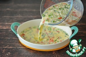 Форму для запекания смажьте маслом, если это необходимо и вылейте в нее омлетную массу.
